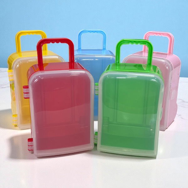 Carry-On Cada Carry contiene: -3 masas 30gcu -3 cortantes G Ruedas y manija fijas Medidas: Al.13 / An11 / Prof. 8 cm Cierre lateral Colores disponibles: Rojo, Amarillo, Verde, Celeste y Rosa